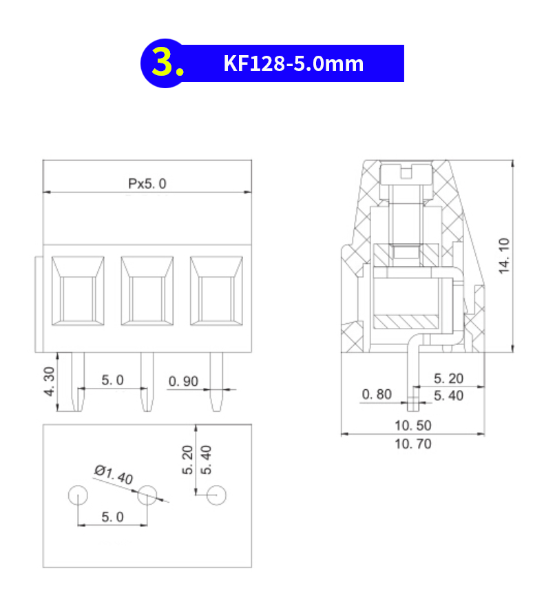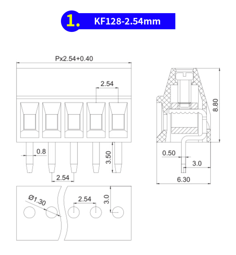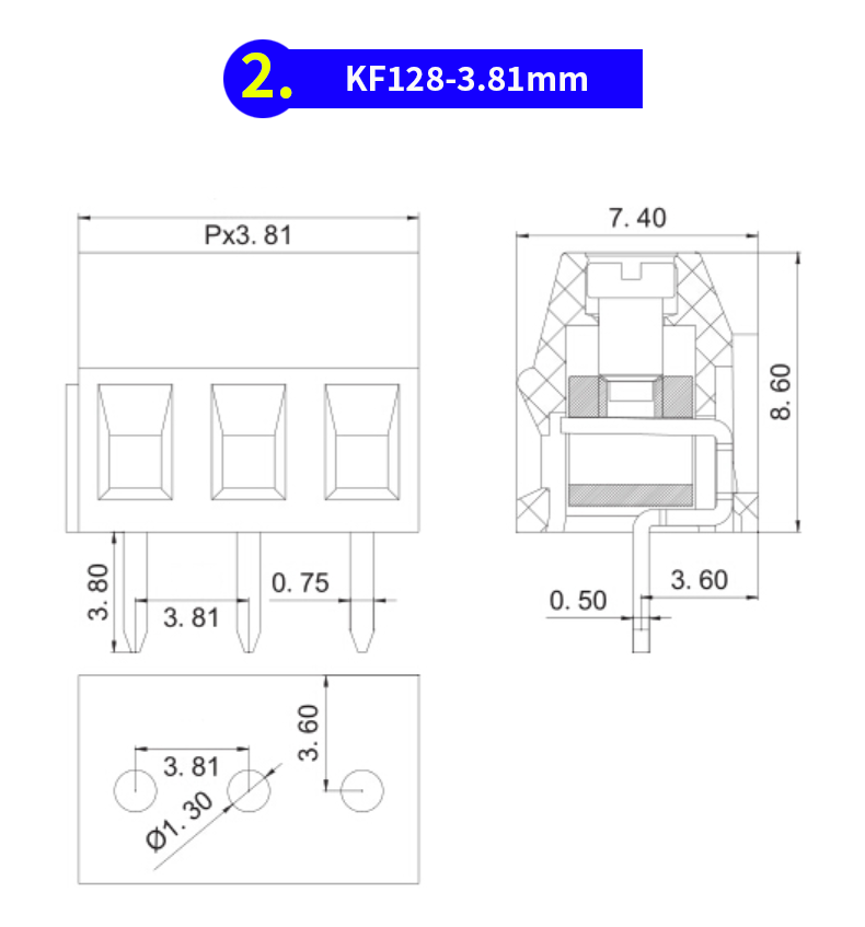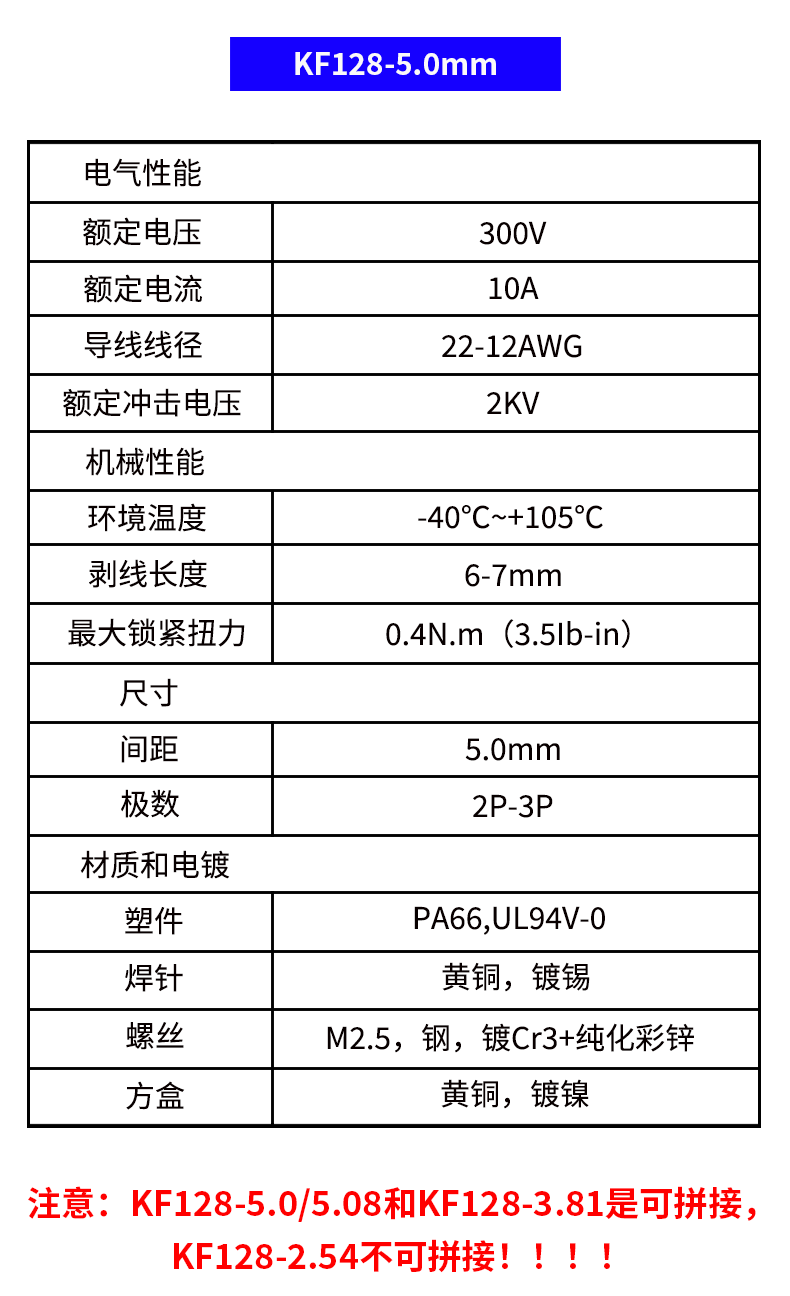 注意:KF128-5.0/5.08和KF128-3.81是可拼接,KF128-2.54不可拼接!?。?!