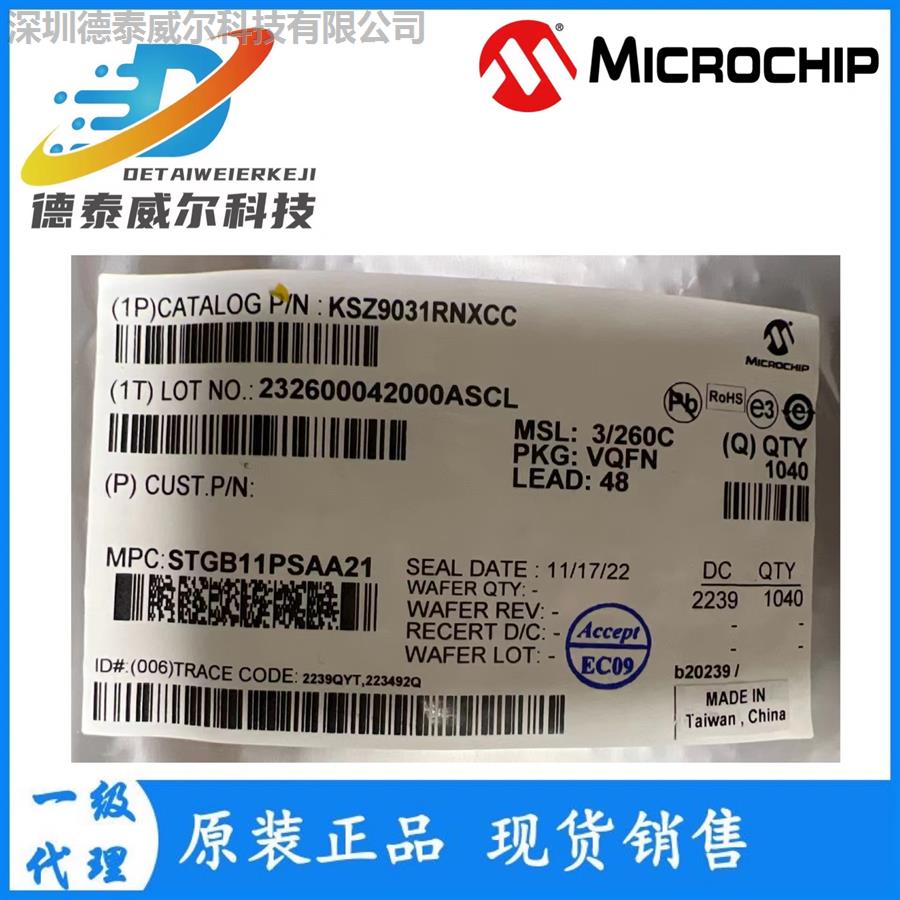 KSZ9031RNXCC-TR Microchip/微芯 通信 以太網(wǎng)IC QFN48